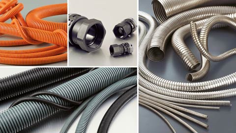 - Breites System-Sortiment: Metall-Schutzläuche, Kunststoff-Wellrohre, passende Verschraubungen und Zubehör